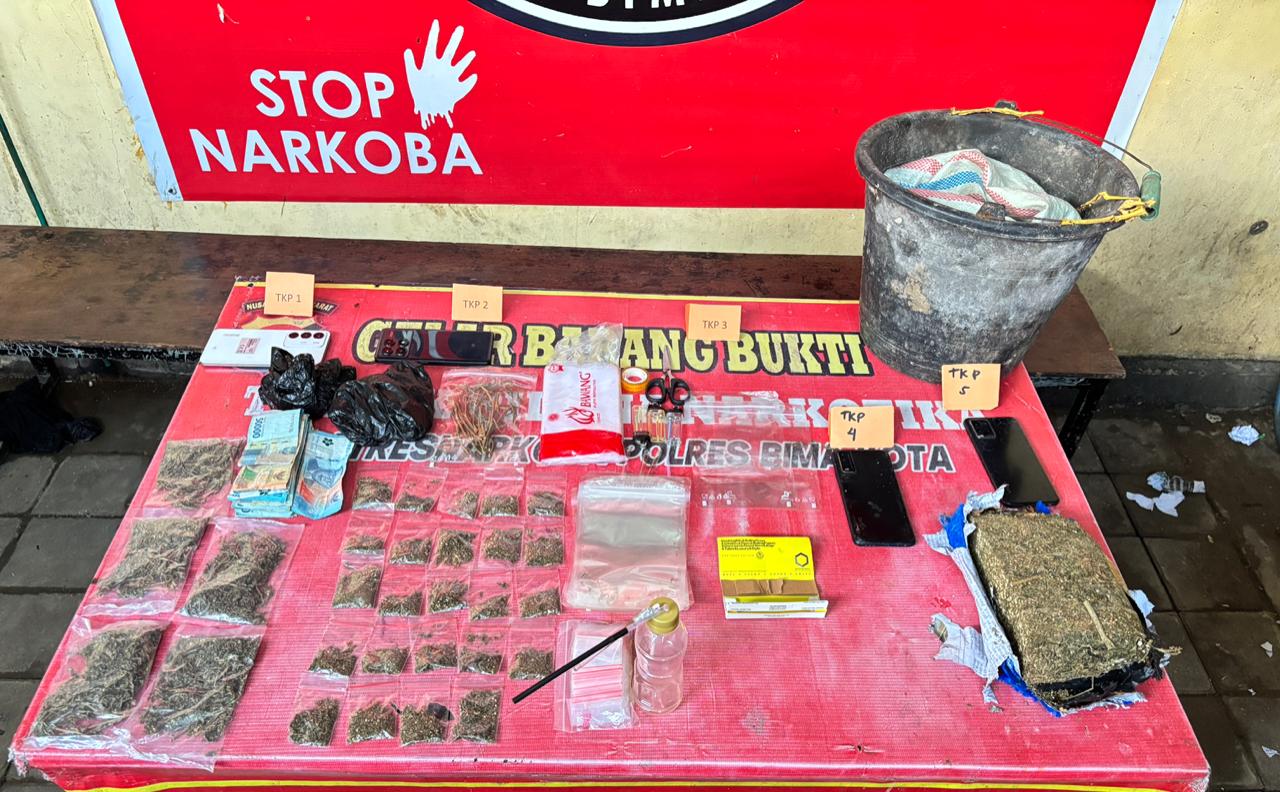 HukumPolres Bima Kota Sita 526 Gram Ganja dari Lima Lokasi, Lima Terduga Pelaku Diamankan